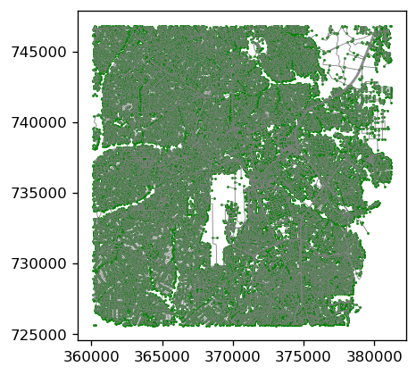 #set same crs as graphschools = schools.to_crs(Gs.graph["crs"])health_fac = health_fac.to_crs(Gs.graph["crs"])schools["longitude"] = schools.geometry.xschools["latitude"] = schools.geometry.yhealth_fac["longitude"] = health_fac.geometry.xhealth_fac["latitude"] = health_fac.geometry.y# Caclulate shortest route between every school and health facility using the travel_time_mins variable as the weight# this can take a few minutesweight_attribute ='travel_time_mins'# Find nearest nodes to each school and health facilityorig_node_id, dist_to_orig = ox.distance.nearest_nodes( Gs, X=schools.geometry.x, Y=schools.geometry.y, return_dist=True)dest_node_id, dist_to_dest = ox.distance.nearest_nodes(Gs, X=health_fac.geometry.x, Y=health_fac.geometry.y, return_dist=True)shortest_paths = {}for source in orig_node_id:for target in dest_node_id:try:# Get the actual path path = nx.shortest_path(Gs, source=source, target=target, weight=weight_attribute)# Get the path length length = nx.shortest_path_length(Gs, source=source, target=target, weight=weight_attribute) shortest_paths[(source, target)] = {'path': path, 'length': length}except nx.NetworkXNoPath:# build dictionary with shortest routes shortest_paths[(source, target)] = {'path': None, 'length': float('inf')}print("Unique school nodes:", len(set(orig_node_id)))print("Unique facility nodes:", len(set(dest_node_id)))print("Snap distances (schools):", dist_to_orig.min(), dist_to_orig.max())print("Snap distances (facilities):", dist_to_dest.min(), dist_to_dest.max())